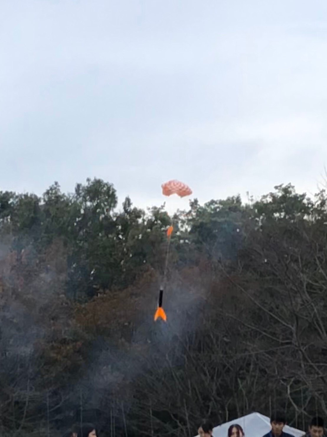 私たちは高度競技とパラシュート定点着地競技に参加しました。結果は約160人中、高度競技が35.29mで62位、パラシュート定点着地競技が5.56mで56位でした。最初は悪天候で打ち上げに影響が出るか不安でしたが、午後には無事晴れて打ち上げも成功しました。