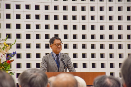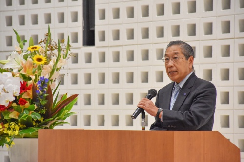 13時からいぶきホールで始まった歓迎式典では、はじめに後藤 治理事長より歓迎のご挨拶があり、校友の皆様への感謝の言葉が述べられました。