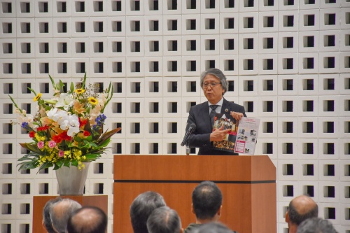 平方 邦行校長からは、本学の附属中学、高等学校の紹介がありました。独自のグローバル教育を行っていることに触れ、開催されたAsian Student Leadership Conferenceにおいて、本学附属中学校2年生による「工学院Juniorチーム」が、英語による発表を行い、スマホ使いすぎ防止の工夫が施されたアプリ「My Pet」が、金賞を受賞したことについての報告がありました。