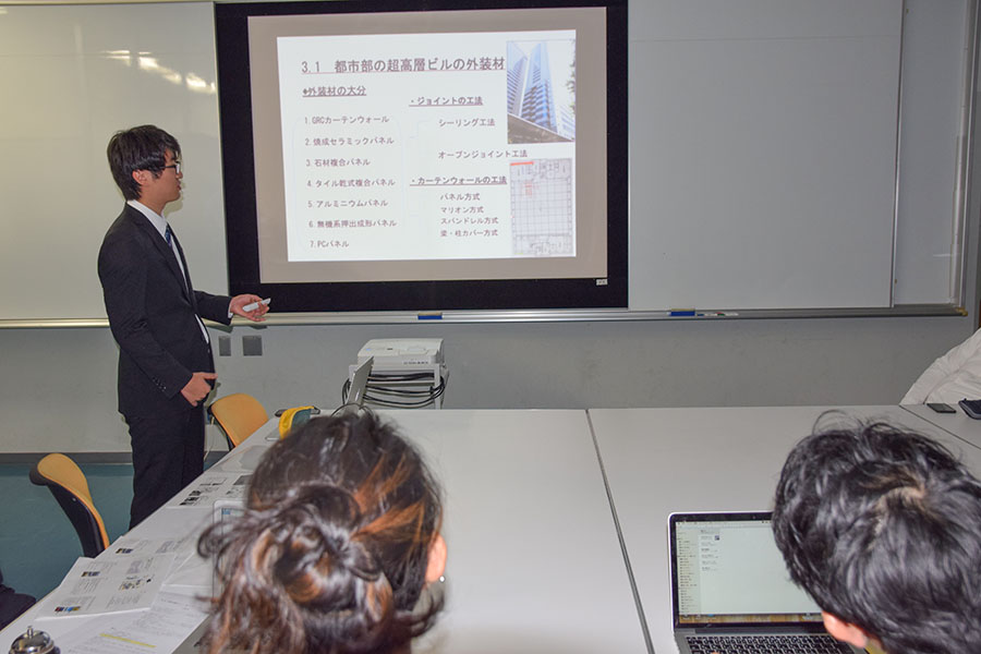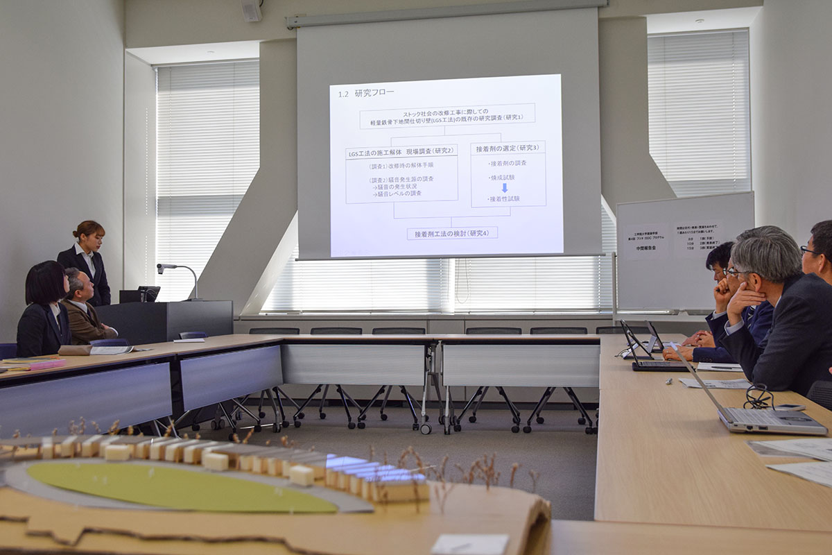 学生の多くは緊張した面持ちで研究内容を発表し、質疑では、現場の緊張感を感じる鋭い質問もあり、学生が回答に窮する場面も見られました。「非常に面白い研究」「どのような場面で用いるのかを明確にすると説得力が出る」「海外の事例などから、コンセプトを整理し、ストーリーを練るとよいのでは」などのアドバイスも頂き、これからの展開が楽しみです。