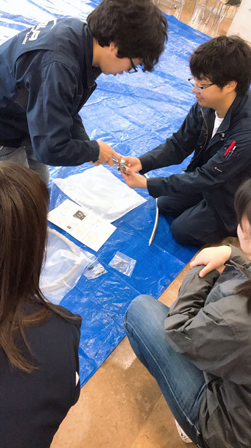 部品の施工の仕方を見せていただき、自分たちも実際に施工しました。また、設営時の注意事項、体験談、現場のシミュレーションもしていただきました。大変勉強になりました。