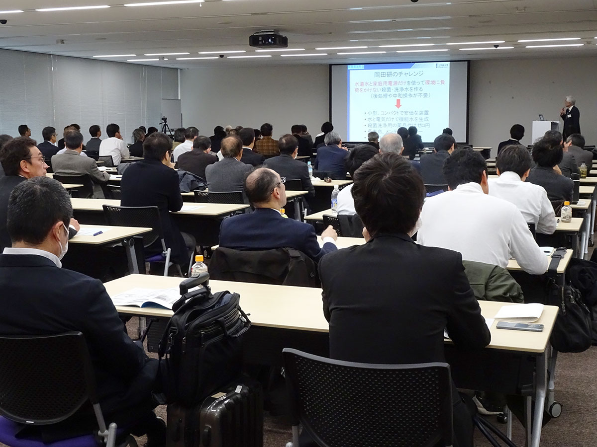 本学にとって4回目となる本説明会では、本学の研究成果の実用化(技術移転)を目的に特許出願の新技術4件のプレゼンを実施しました。