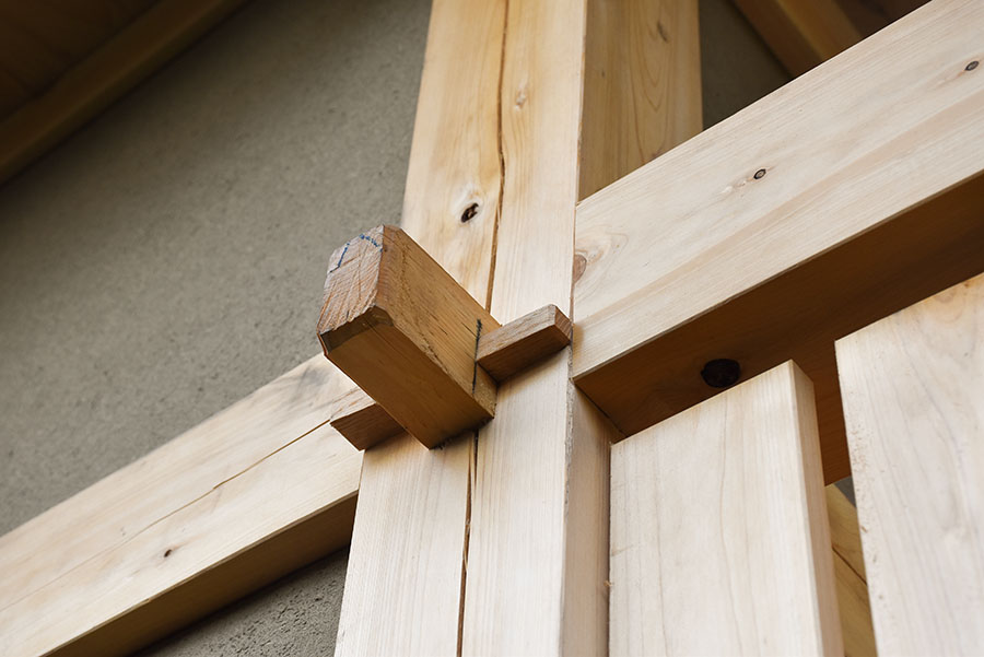 木を組んで建てられている