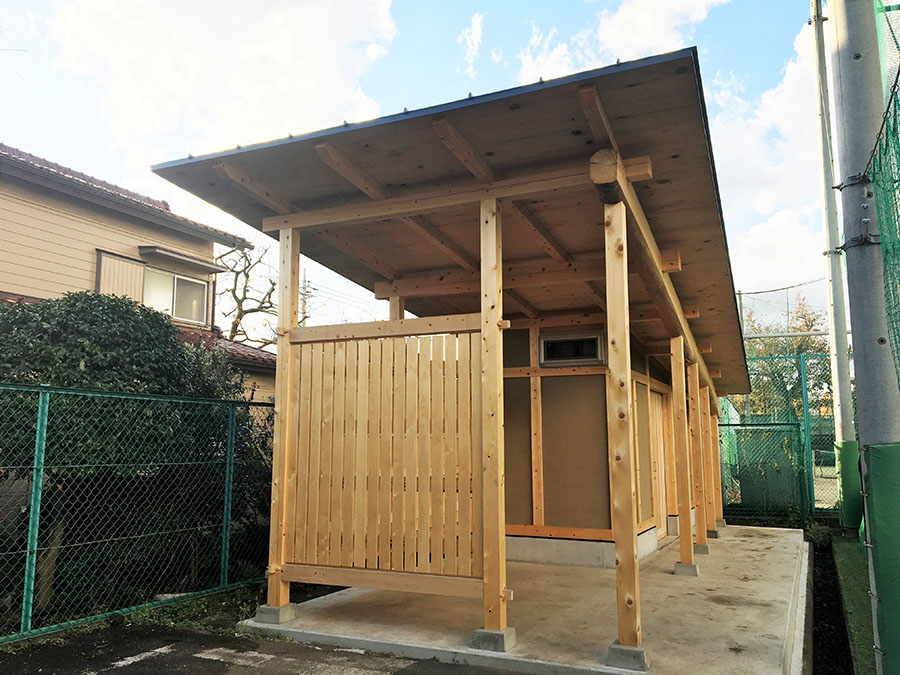 この取り組みは2017年に八王子キャンパスの倉庫建て替えからスタートし、3棟目となる今回、初めて附属中学校・高等学校の敷地内に建設しました。地産地消のものづくりとして地元多摩産の木材を活用しており、利用者が居心地良く利用できるようルーバーを取り入れた休憩スペースを設置するなど、随所に学生のこだわりが詰め込まれています。宮大工など地元の職人の方々にご協力いただき、伝統的な木構造を実践的に学ぶ貴重な機会となりました。