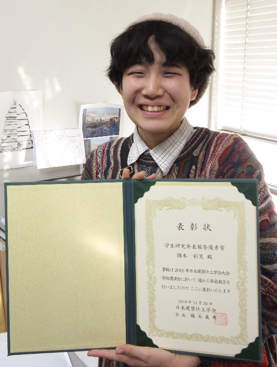 2019年10月22日に東京大学で開催された2019年度日本建築仕上学会大会学術講演会において、建築学専攻修士1年生の中村優斗さん・猶木彩笑さん(いずれも田村研究室・田村雅紀教授)が学生研究発表報告優秀賞を受賞しました。