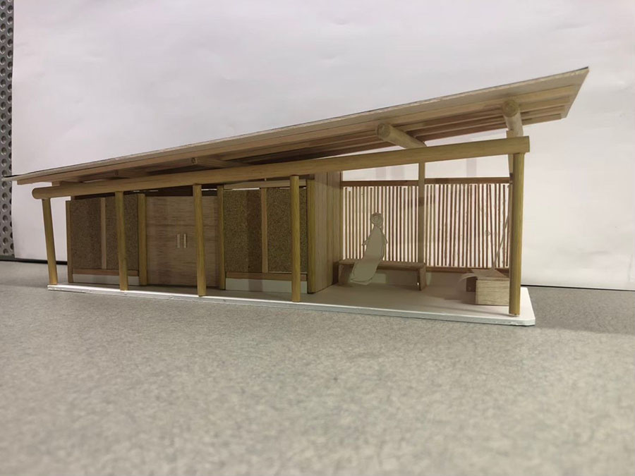 木造建築の構造・建設方法などの知識のみを学ぶのではなく、樹木から木材を作る林業・製材業の現場や、設計・製作活動を通して、その過程にある社会的問題なども含めて木造建築への理解を深めました。利用者が居心地良く利用できるようルーバーを取り入れた休憩スペースを設置するなど、随所に学生のこだわりが詰め込まれています。