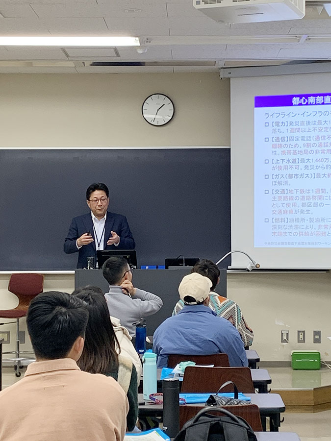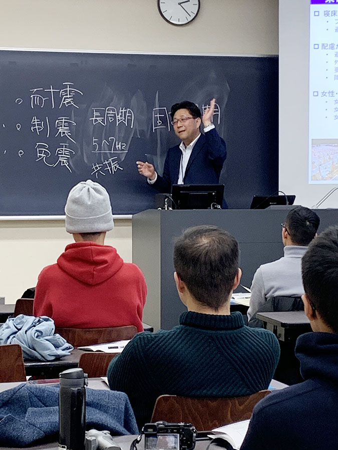 Home 2019年度のお知らせ 建築学部村上教授が、深圳大学の学生へ防災に関する講義を実施 建築学部村上教授が、深圳大学の学生へ防災に関する講義を実施 2020/01/17 シェアする 2020年1月16日に、中日教育交流会のプログラムで来日している深圳大学土木学科の学生と教員が工学院大学を訪問し、建築学部村上教授による防災に関する講義を受け、首都圏直下地震に対する備えと対策について学びました。 講義後も積極的な質問が飛び交い、有意義な交流となりました。 建築学部 エリア防災 工学院大学が考える国際交流とは 前へ 一覧に戻る 次へ