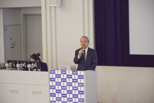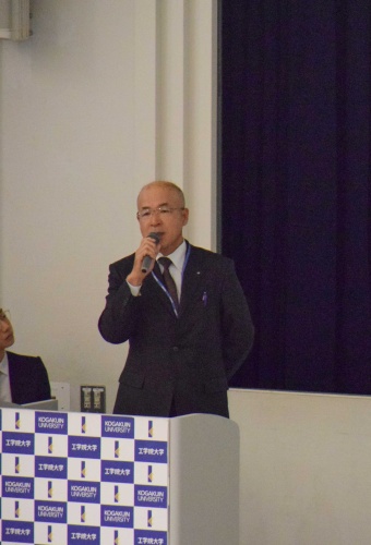 初めに、一般社団法人工学院大学校友会会長の田野邉 幸裕様・学校法人工学院大学 後藤 治理事長から開会の挨拶があり、本シンポジウムの開催に至った経緯や目的、今後のスケジュールなどが語られました。