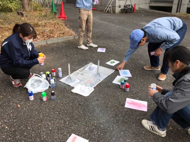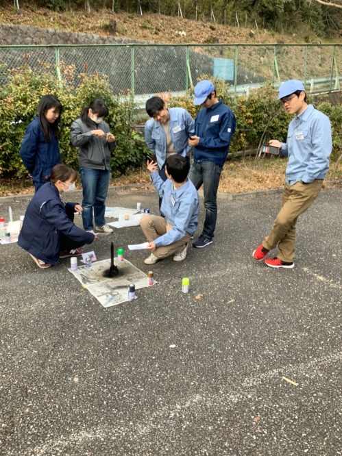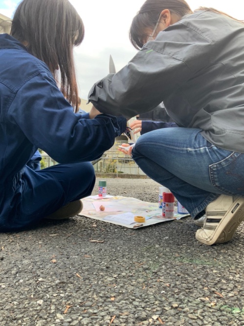 塗装はメンバーが持ってきてくれたスプレーを使いました。液が垂れないように調整したり、色の濃さを調整したりするのが若干難しかったですが、慣れると自分たちのペースで塗装ができました。