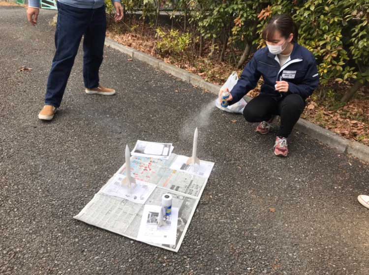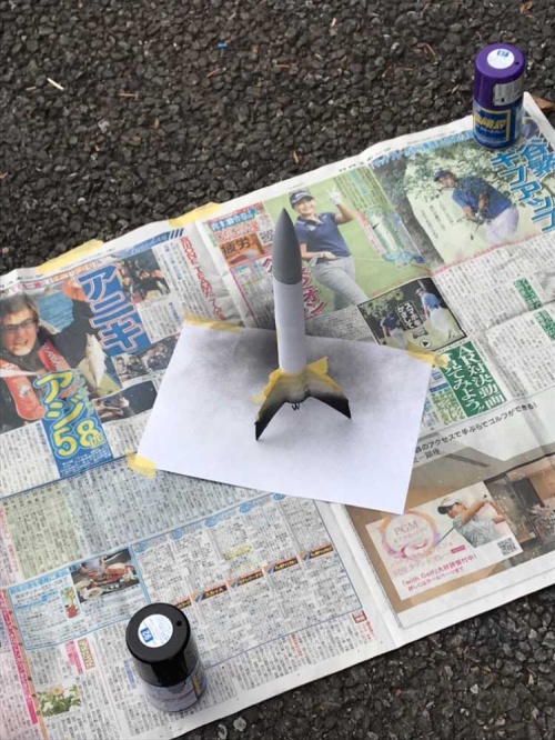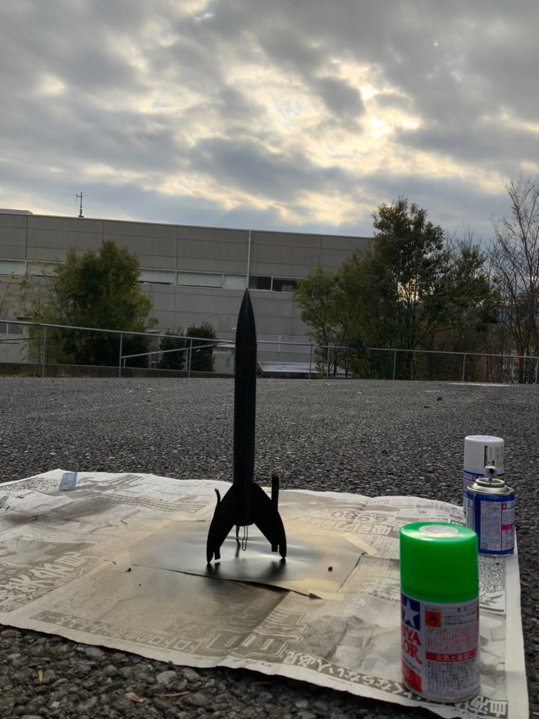 2/4(火)にA型モデルロケットの製作の続きを行いました。今回は塗装とストリーマーの接着です。