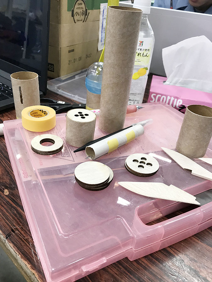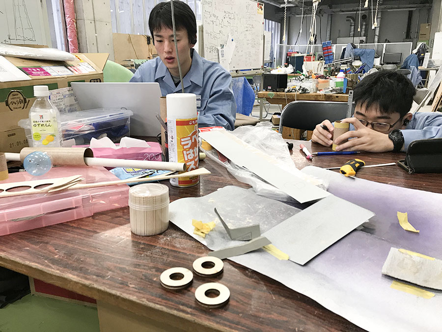 2/23(日)の打上に向けて協力しながら製作しています。次回は接着の続きや塗装を行う予定です。