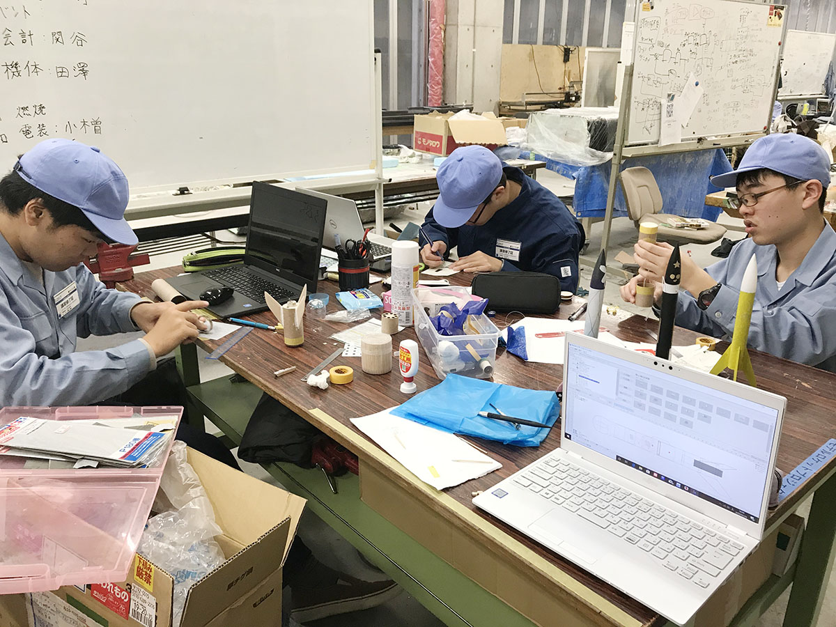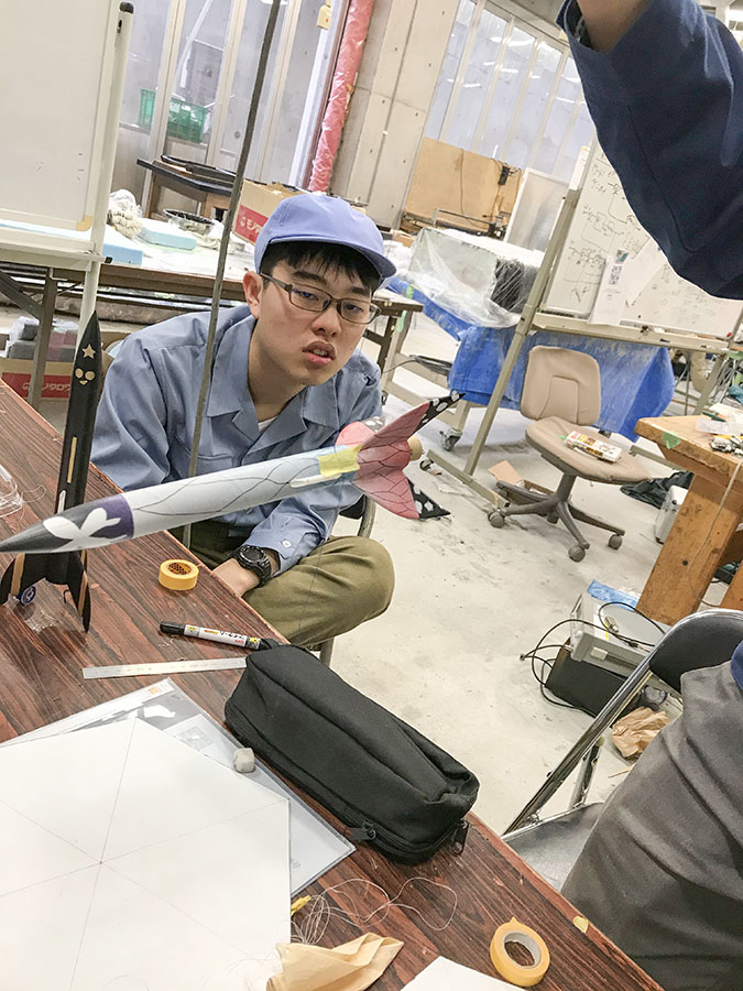 C型モデルロケットはパラシュートの作成、エンジン周り、バッフル、フィンの接着をそれぞれ分担して作業しました。フィンを接着するにあたり設計ミスが見つかりましたが、迅速な対応ができたおかげで難なく作業を終えることができました。