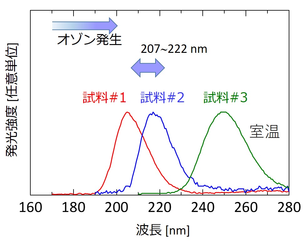 波長207~222 nmの紫外線は、人の組織を損傷することなしに空中浮遊のウィルスを殺菌することができるという報告が2018年になされました[1]。また、波長200 nm以下の紫外線は、効果的にオゾンを形成して殺菌や物質の表面改質に寄与するほか、光化学やリソグラフィなど産業応用がなされています。しかし、このような紫外線を得るには、Hgや希ガスの放電を利用したランプやレーザが用いられてきました。これを半導体からの発光を利用して得る目的で、窒化物半導体を用いる研究が進んでいますが、通常環境下で210 nm以下の波長を得ることは物性的に不可能です。今回、本研究グループは、酸化マグネシウム亜鉛 (MgZnO) 半導体を用いて、この波長領域の紫外線を発生することに成功しました。