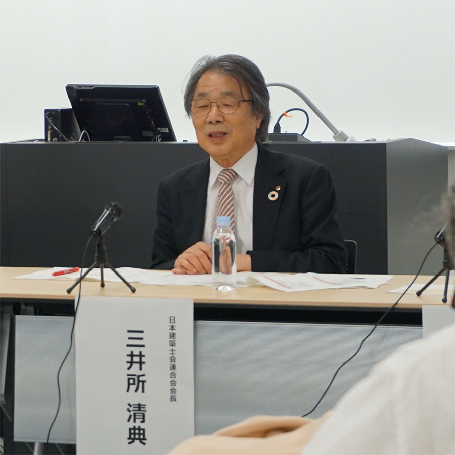 日本建築士会連合会会長・三井所清典氏と工学院大学・後藤治理事長から、今回の提言の概要について防災・木材の調達・職人手配などの観点から説明がありました。首里城復元を若い職人を育てる場として活用するなど、新しい提案が多く盛り込まれており、質疑応答の時間には参加者からは、その内容などについて多数の質問がありました。