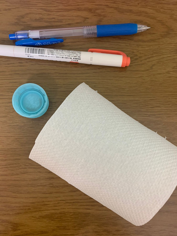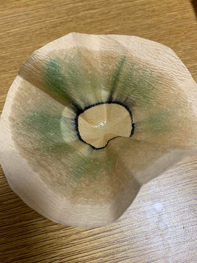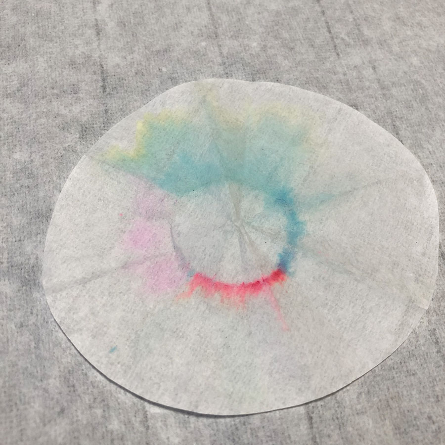 普段の活動や子ども向けの科学イベントでは、ろ紙に水性ペンで色をつけ、エタノールを染み込ませて実験を行います。しかし、今回は家にあるもので実験を行ったため、ろ紙をコーヒーフィルター・キッチンペーパー・半紙に、エタノールを水に代替して行いました。