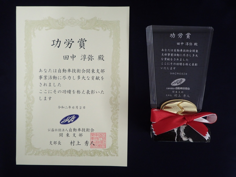 田中淳弥教授(機械工学科)が、2020年6月2日、担当理事として学生活動の活性化や若手の技術者育成、学術講演会の運営などに尽力し顕著な貢献が認められ、自動車技術会関東支部より「功労賞」を授与されました。