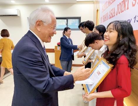 ダナン工科大学での奨学金贈呈式 右:JESCO 柗本会長