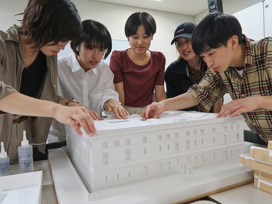 大内田研究室(建築デザイン学科、指導教員:大内田史郎教授)の学生たちが制作した日本銀行本店本館の模型が日本銀行本店内に展示されています。2020年10月1日から再開した日本銀行の本店見学で観ることができます。
