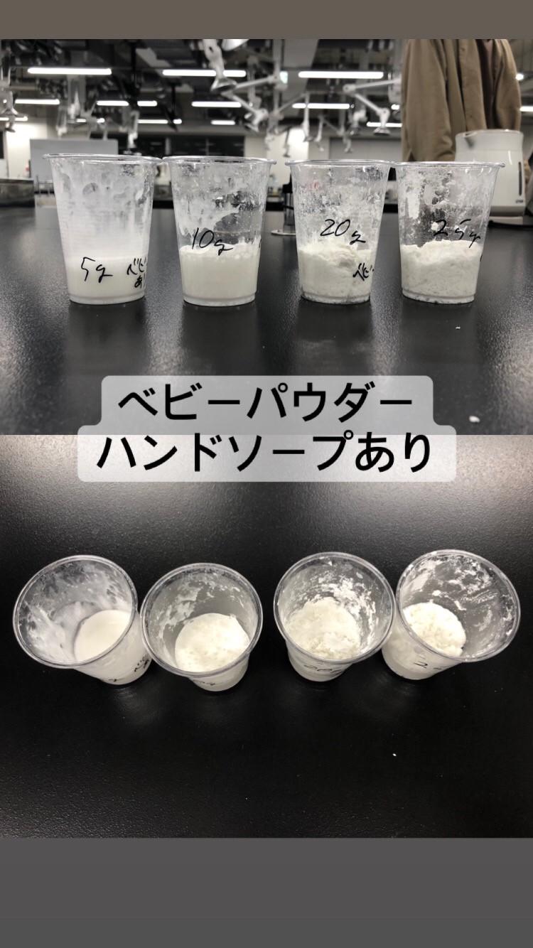 次回以降の活動では、さらにベビーパウダーの分量の調整を行い、子どもたちと一緒に楽しめる新たな実験教材の開発を目指します。