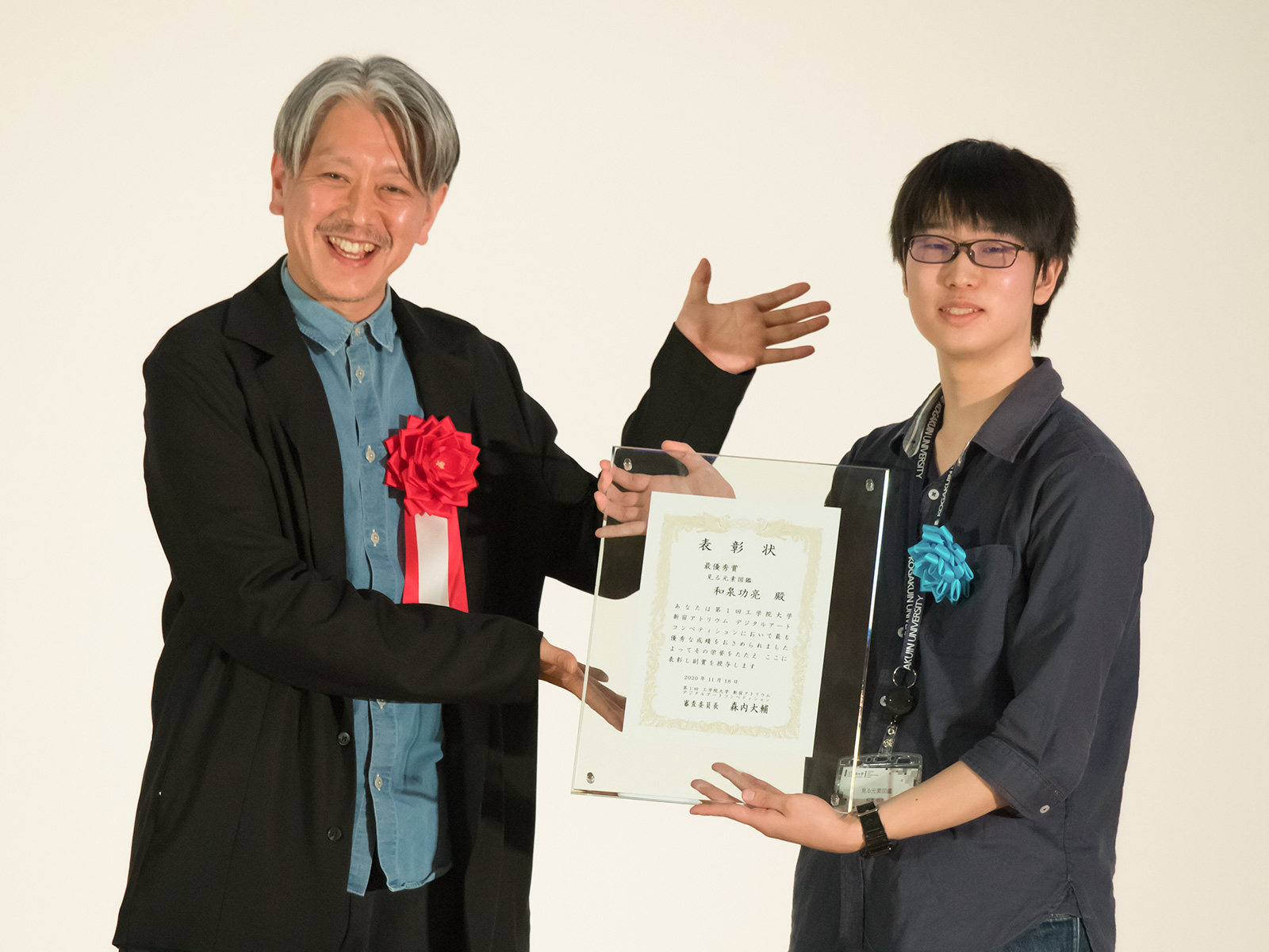 審査委員長 森内大輔氏(左)と最優秀賞を受賞した和泉功亮さん(右)