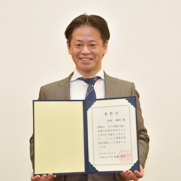 10月31日に開催された学園創立133周年記念表彰において、2020年度「工学院大学ベストティーチャー」に選出された2名に賞状と記念品を授与しました。