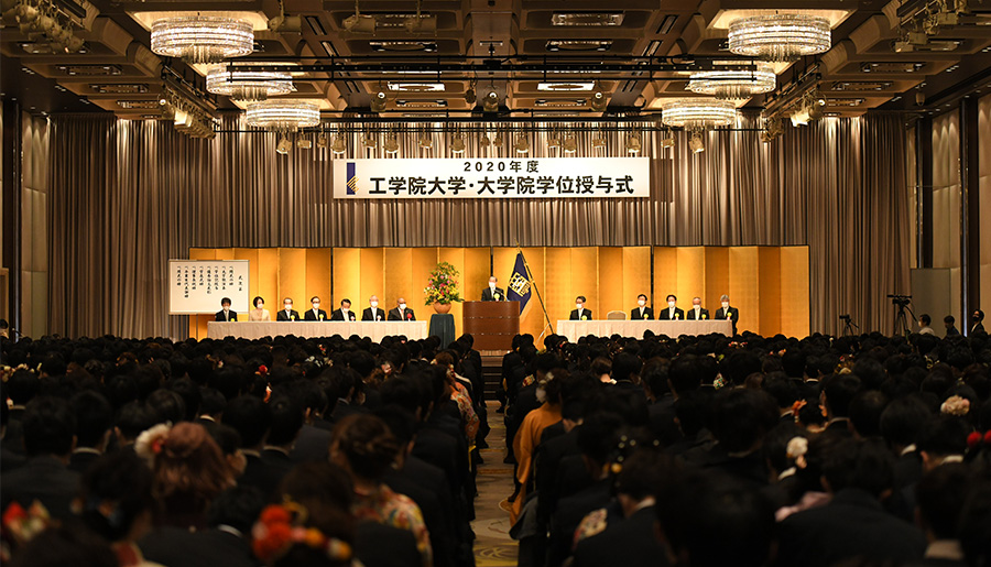 3月19日、京王プラザホテルコンコードボールルームを会場に工学院大学・大学院の学位授与式が挙行されました。2020年度は、学部生1247名、修士・博士課程247名に学位記が授与されました。