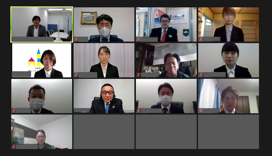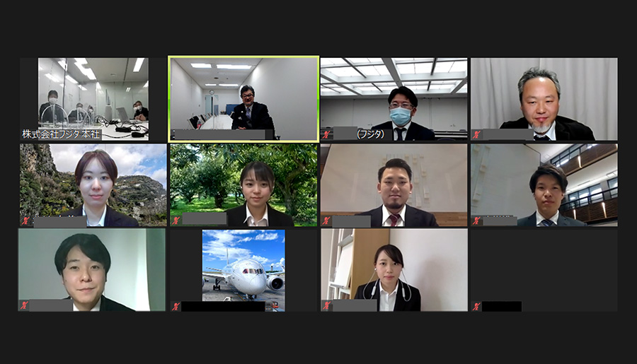 例年は、支援企業の幹部の方々を報告会にお招きし、学生の発表に対し直接ご意見を頂いておりましたが、本年度は、コロナウイルス感染防止の観点からオンライン(ZOOM)にて実施されました。支援企業である、株式会社フジタ様からは執行役員 建築本部副本部長 兼 設計統括部長である髙須登志也様、株式会社セブン&アイ・クリエイトリンク様からは取締役会長である近藤悦啓様をはじめ幹部の方や各分野担当者様など多数の方々にご参加いただき、学内応募から選ばれた学生計11名(株式会社フジタ様支援6名5組、株式会社セブン&アイ・クリエイトリンク様支援5名)が自身の研究成果についてオンラインで発表を行いました。