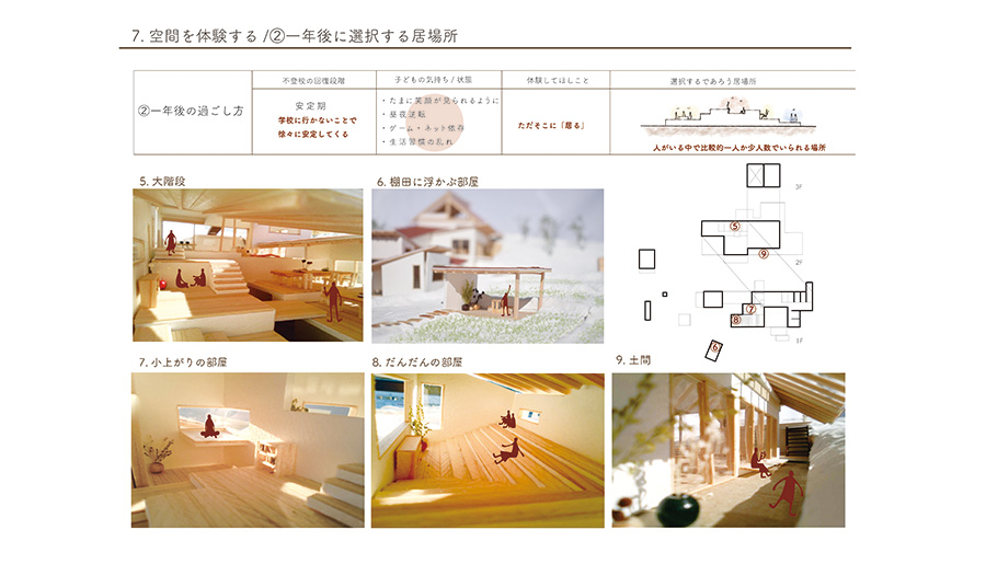 2021年2月20日・21日にオンラインで開催された全国合同建築卒業設計展「卒、21」において、建築学部建築デザイン学科4年(受賞当時)の梅原千夏子さん(冨永研究室・冨永祥子教授)が「棚田が育む不登校の子ども達のためのフリースクールの提案」で最優秀賞を受賞しました。