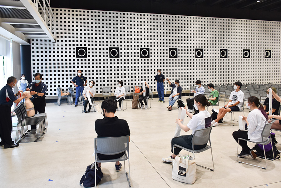 東京防災救急協会による指導を受ける学生たち