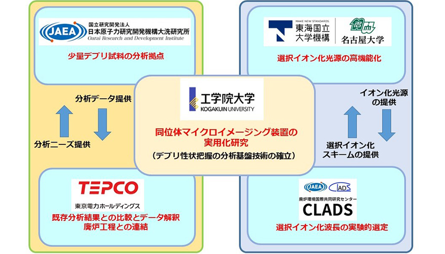 | 研究実施機関について | 工学院大学  学長:伊藤慎一郎、所在地:東京都新宿区、八王子市 名古屋大学 総長:松尾清一、所在地:愛知県名古屋市 日本原子力研究開発機構 理事長:児玉敏雄、所在地:茨城県那珂郡東海村 東京電力ホールディングス株式会社 代表執行役社長:小早川 智明、所在地:東京都千代田区 |