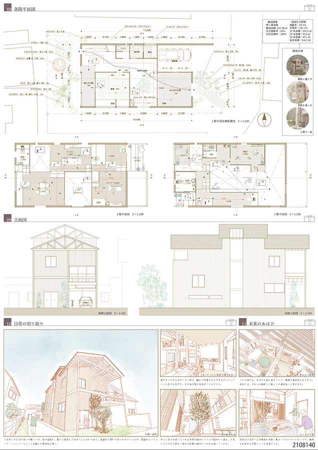 この提案では、様々なもの同士の距離感を見直し再構築することでコロナ時代におけるごく普通の家族の暮らしを設計しました。株式会社はなおか様にその点を評価して頂いたことで自信につながりました。今後も精進していきたいと思います。