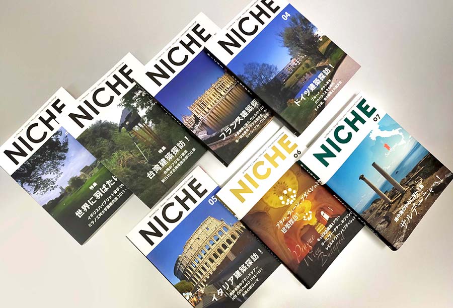 工学院大学建築学部同窓会NICHE出版会 より2014年から刊行されている冊子。「大学の知的資源やネットワークを生かして社会に貢献する」という理念を掲げ、徹底した海外取材を通じて、建築とデザインの変遷を記録。日本および取材国の大学の研究者や博物館の学芸員に寄稿を依頼し、ニッチな話題を掘り下げている。
