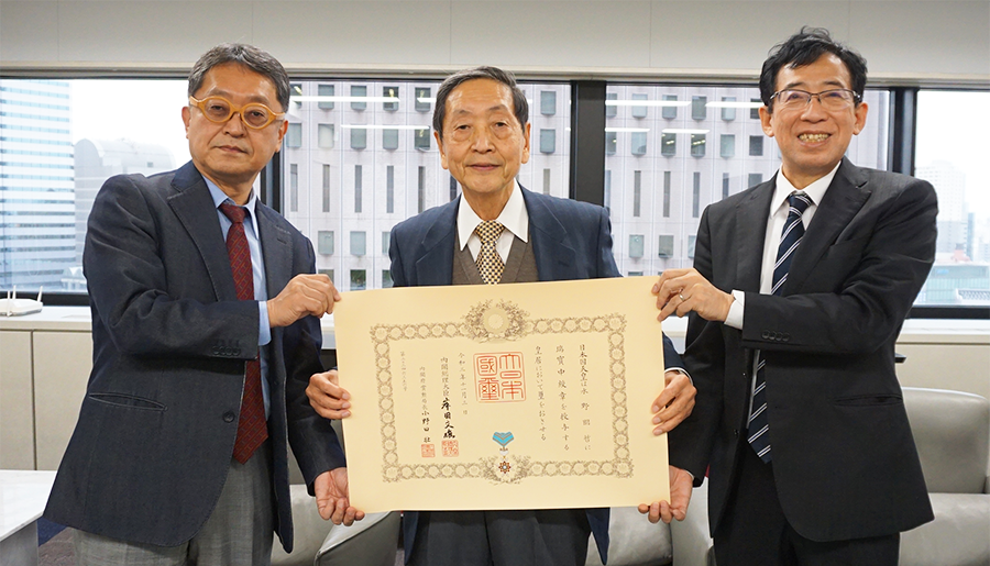 Home 2021年度のお知らせ 秋の叙勲で、水野明哲元学長が瑞宝中綬章を受章 秋の叙勲で、水野明哲元学長が瑞宝中綬章を受章 2021/11/03 シェアする 令和3年 秋の叙勲で、本学元学長 水野明哲名誉教授が瑞宝中綬章を受章されました。長年のご功績に対する栄えある受章、心からお祝い申しあげます。 後藤治理事長と伊藤慎一郎学長に受章を報告した水野明哲名誉教授 前へ 一覧に戻る 次へ