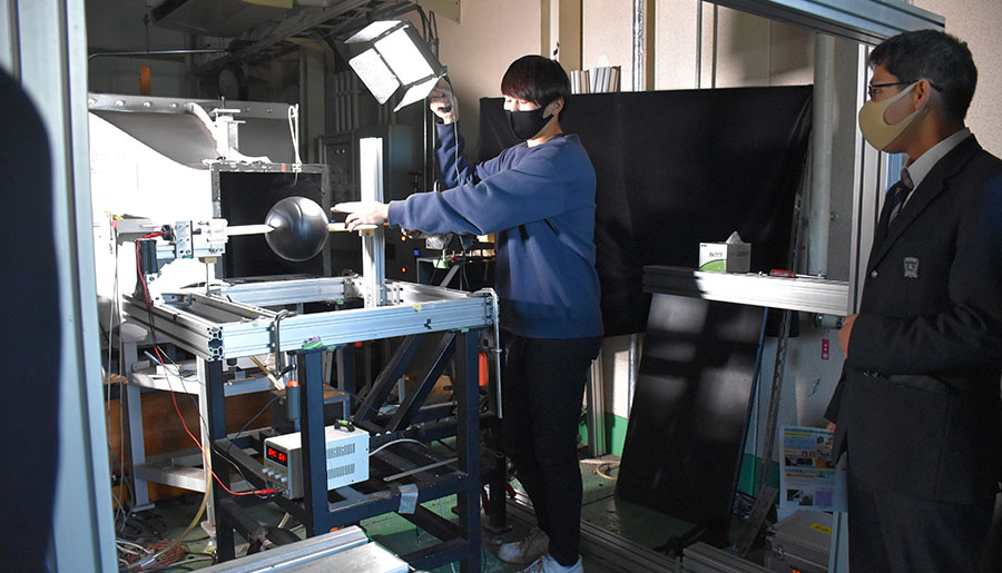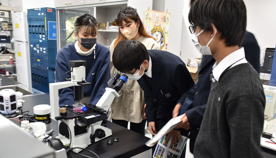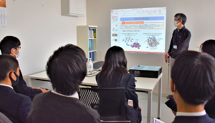 11月17日には、同大学八王子キャンパスにある3つの研究室を見学しました。教授や研究室所属の学生(学部4年生、大学院生)による説明に、生徒たちは驚いたり感心したりする様子が何度も見られました。