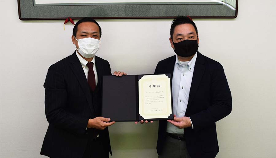 贈呈式では受入れが10年目となる山下マテリアル株式会社に感謝状を手渡し、本学キャリア教育に大きく貢献していただいている同社へ感謝の言葉を贈りました。