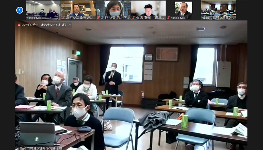 仙台市の同地区は、2023年4月から東北学院大学の新キャンパスが開設予定です。商店会と学生との関係を築いて地域活性化につなげようと、同地とオンラインで結び、意見公開しました。