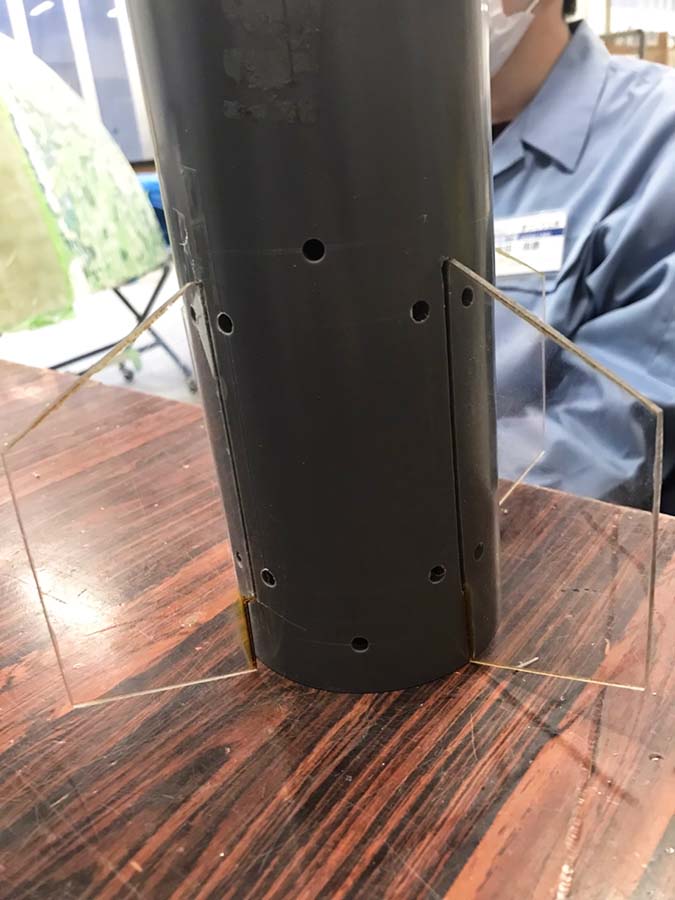 機体班は、工房で機体を製作しています。ボディチューブやアングル(ボディチューブとフィンを固定する部品)の穴あけ、フィンの切り出しが完了し、カプラー(ボディチューブ同士をつなげる部品)を加工中です。今後、ノーズコーン(ロケットの先端)を加工します。