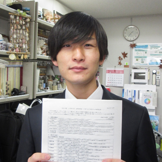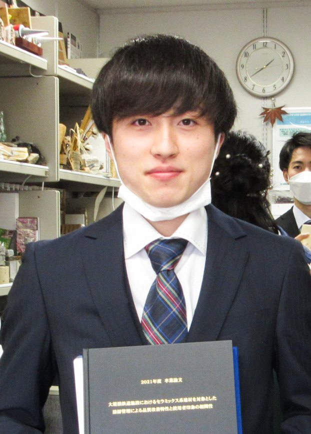このたび、日本建築材料協会 優秀学生賞を賜り、誠にありがとうございます。研究の実施ととりまとめに際しては、指導教員である田村先生をはじめ,暴露場所の石川工務所など多くの皆様にご指導ご鞭撻を賜りました。この機会をお借りして、御礼申し上げます。