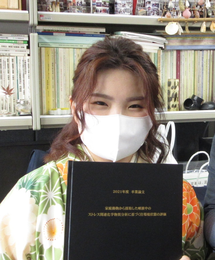 | 佐藤芽衣 | 2021年度 第92回 日本建築学会関東支部研究発表会 若手優秀研究報告賞 | 家庭動物から採取した唾液中のストレス関連化学物質分析に基づく住環境状態の評価 |