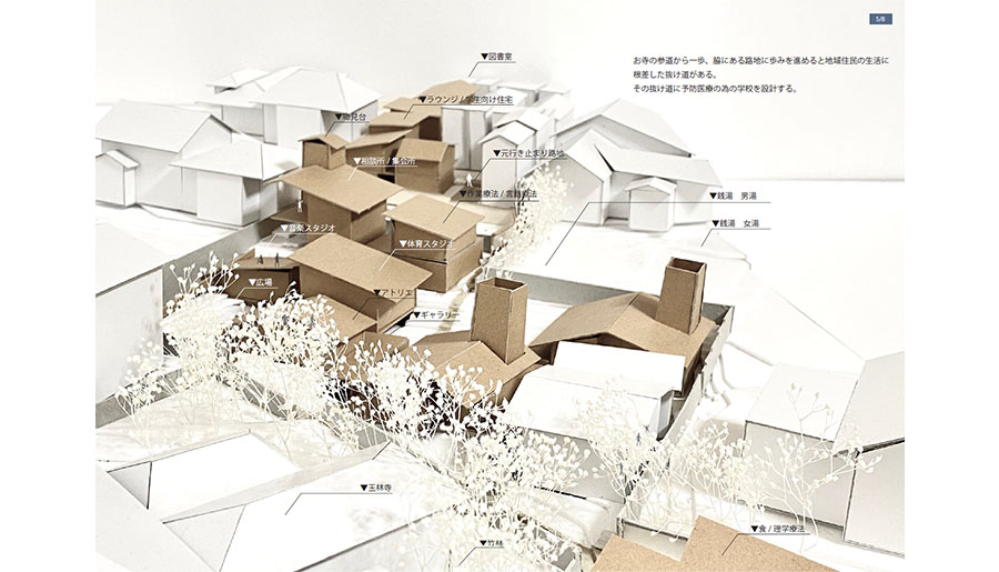2022年4月17日に埼玉会館で開催された第22回埼玉建築設計監理協会卒業設計コンクールにおいて、建築デザイン学科4年(受賞当時)の冨田奈々さん(冨永研究室・冨永祥子教授)の作品「街の人がつくる予防医療の学校」が埼玉建築設計監理協会賞を受賞しました。