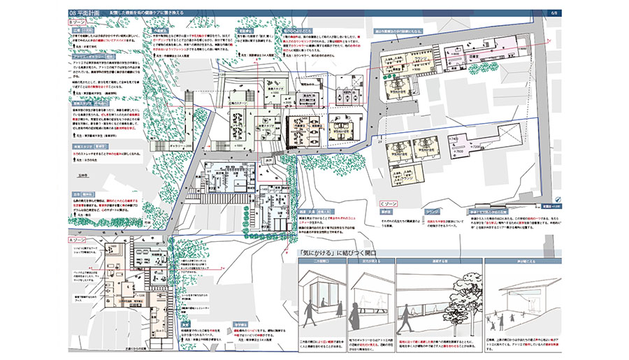 冨田さんは、希薄化している予防医療との関係を見つめ直し、訪れた人が予防医療が身近なものとして主体的に学べる「街の学校」を提案しました。健康に詳しい「街の先生」から教えてもらうことで、一次予防や三次予防へと繋ぎつつ、集まる人々が互いに気に掛ける関係を日常的に築くという内容で、生活の質の向上は大きな意味で病気の予防につながります。