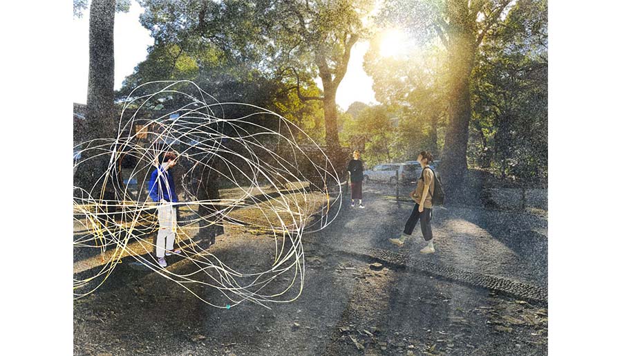 - 作品内容:明治神宮が祈りという行為を通じてこれまで東京における歴史・場所・人々のつなぎめとなってきたことから、それを次の時代までつなげるフォリーを「つなぎめ」というタイトルで制作