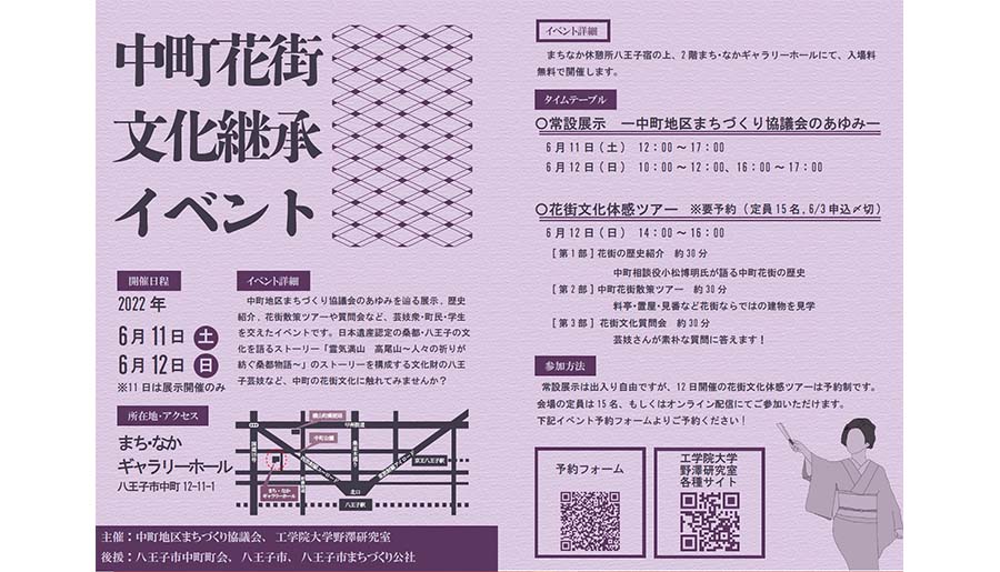 野澤研究室(まちづくり学科)は、「中町花街文化継承イベント」を中町地区まちづくり協議会の一員として開催します。