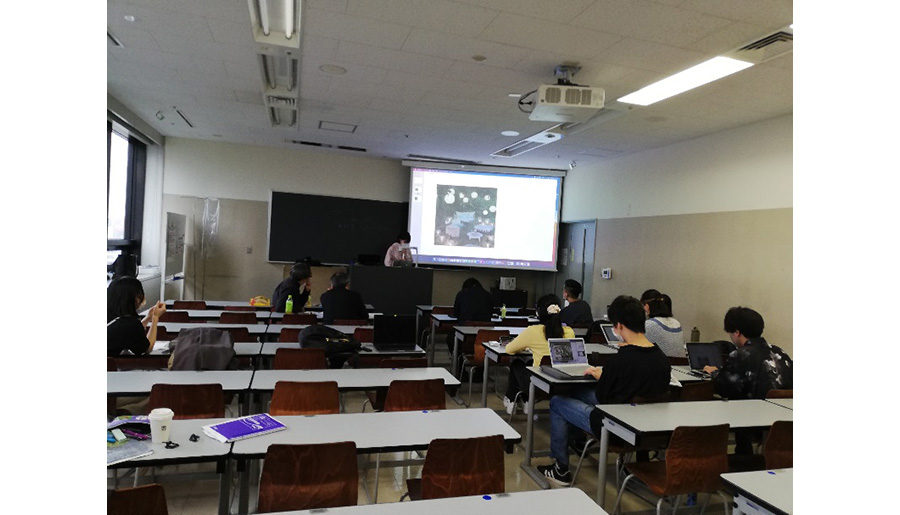 チームラボプラネッツ TOKYO DMMは世界各地でアート展を開催しているチームラボのミュージアムの一つであり、コンセプトは「身体ごと没入し、他者と共に世界と一体となる」で、超巨大な4つの作品空間と2つの庭園からなる「水に入るミュージアムと花と一体化する庭園」です。また、ミュージアム敷地の一角には、京都発のヴィーガンラーメン専門店「Vegan Ramen UZU Tokyo」があり、《虚像反転無分別》や《空と火のためのロングテーブル》、《ひとつなぎのベンチ》などの作品空間で実際にラーメンを食べることもできます。参加学生はこのミュージアム見学を通じて、自分の作品へのヒントやインスピレーションを得て、6月6日の中間報告会、6月28日の最終発表会に臨みました。