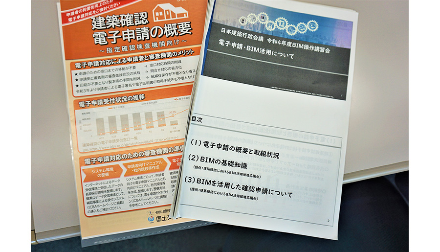 この講習会は、今後国を挙げて「建築確認におけるBIM活用」に進むきっかけとなる、公共性の高いイベントです。2回とも国土交通省の方によるご挨拶で始まり、いずれも、関東圏の市・23区・確認審査機関など日本の建築行政を担う方々約20数名が参加しました。本講習会は、建物の計画を法的に審査する方々を対象としたもので、BIMを使って審査すると、どんな便利さがあるかを体験しました。BIMを使えば、建物の3D形状だけでなく、建物の仕様情報も同じ画面の中で見ることができます。岩村教授が他のソフトにはない操作や3D表示、情報表示を紹介するたびに、参加者は画面を操作し、時には補助者からアドバイスをもらいながら積極的に学び、BIMの利便性を体験しました。