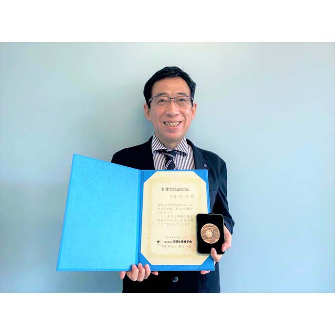 伊藤慎一郎学長が、可視化情報学会の名誉会員に選ばれました。2020年には会長に就任し、可視化情報学および同学会の発展に貢献してきました。