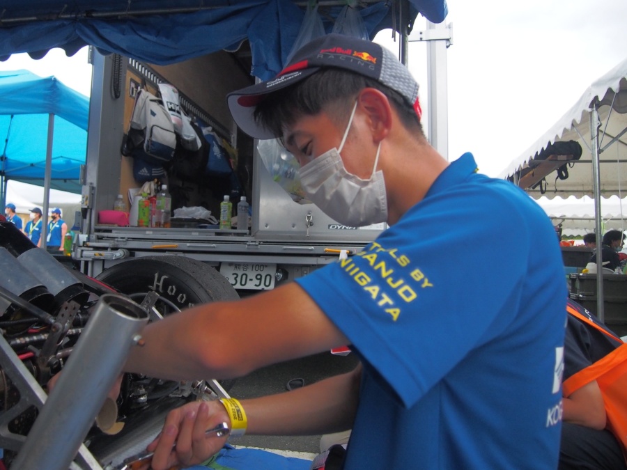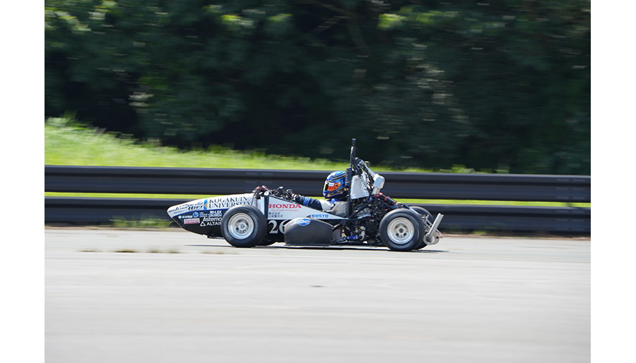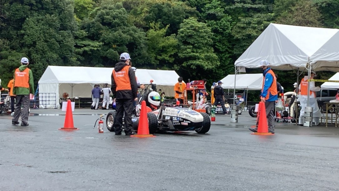 大会では車の走行性能だけでなく、車両コンセプト・設計・コスト審査など、ものづくりの総合力を競います。マシンの製作にあたって、機械・電気に限らず幅広い実践的な知識を習得するとともに、性能向上・原価低減・商品性向上などにチャレンジします。審査は、車検、静的審査、動的審査の審査結果、計1000点満点で順位を決定されました。