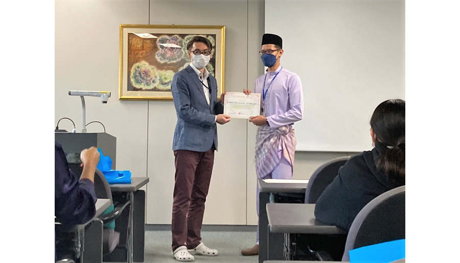 発表会終了後は、修了証の授与が行われ、本学学生が作成したプログラム期間中のできごとをまとめた動画を放映し、和やかな雰囲気で交流を締めくくりました。