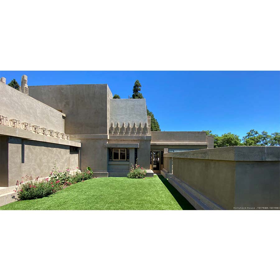 また山邑邸は、1917年に建設されたホリホックハウスと類似点があり、特に、外観の屋根とファサードの形が極めてよく似ていることを、写真を用いて解説しました。