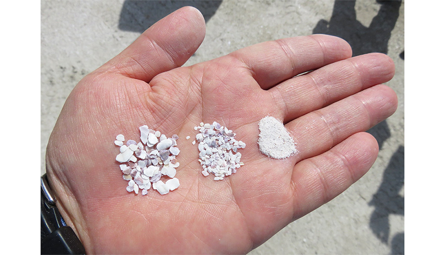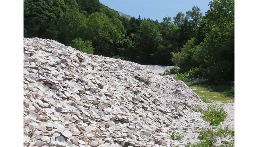 ホタテ貝殻は、主成分が炭酸カルシウム(CaCO₃)で出来ています。海水中のCO₂を吸収して成長し、貝殻の質量のうち約44%はCO₂を内部に固定蓄積できるため、廃棄せずにプレキャストコンクリートへ再利用することにより、ホタテ殻が蓄積したCO₂をコンクリート内部に固定し続けることが出来ます。従来、建築産業では、建物への用途として活用が期待されてきましたが、粉砕物が不均一であることなどにより十分に使用できず、これまでは土木用途での再使用に限られていました。